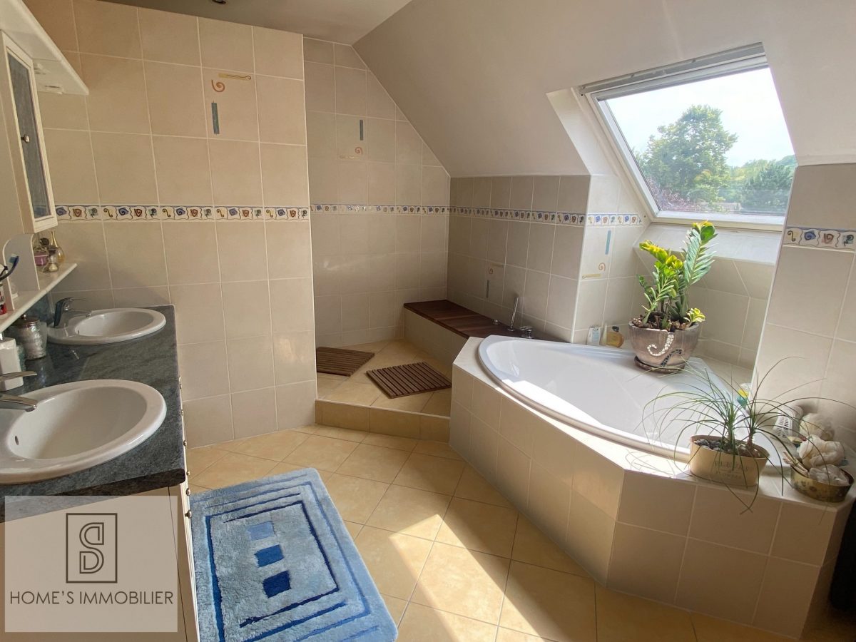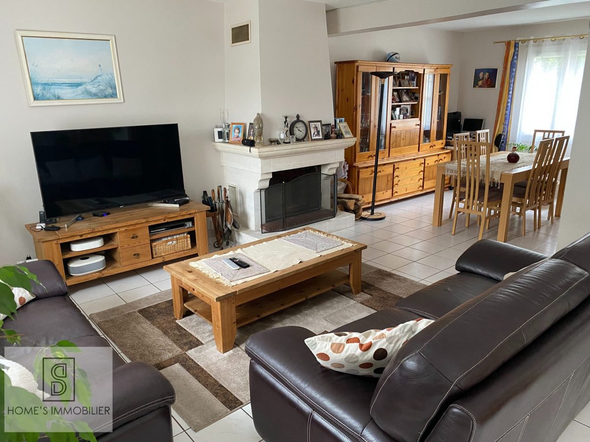 HOME’S IMMOBILIER vous propose à 2 pas de l’école maternelle et primaire ainsi que des commerces, très belle maison familiale d’environ 165m² habitable. Comprenant au rez-de-chaussée : entrée cathédrale, séjour double lumineux avec cheminée à insert et salle à manger, le tout d’une surface d’environ 50m², cuisine américaine équipée, buanderie avec cellier. Dégagement desservant le coin nuit avec WC, une salle de bains, une chambre et dressing.